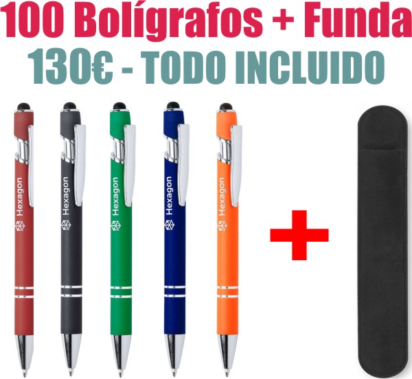 - Precio incluye: bolígrafo + funda + marcaje + IVA.